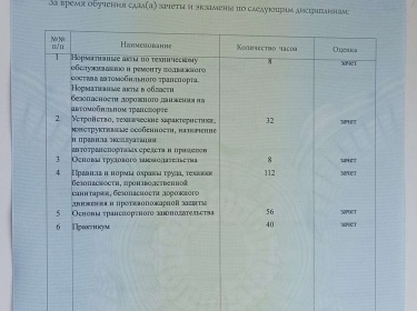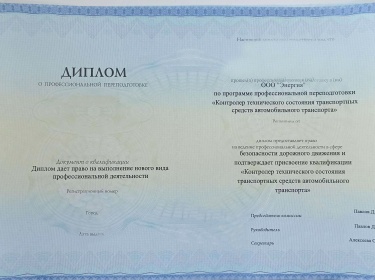 Диплом контролера (механика) по выпуску автотранспорта на линию