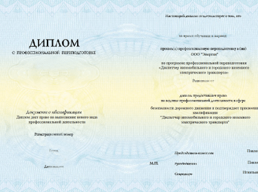 Диплом диспетчера автомобильного и городского наземного электрического транспорта